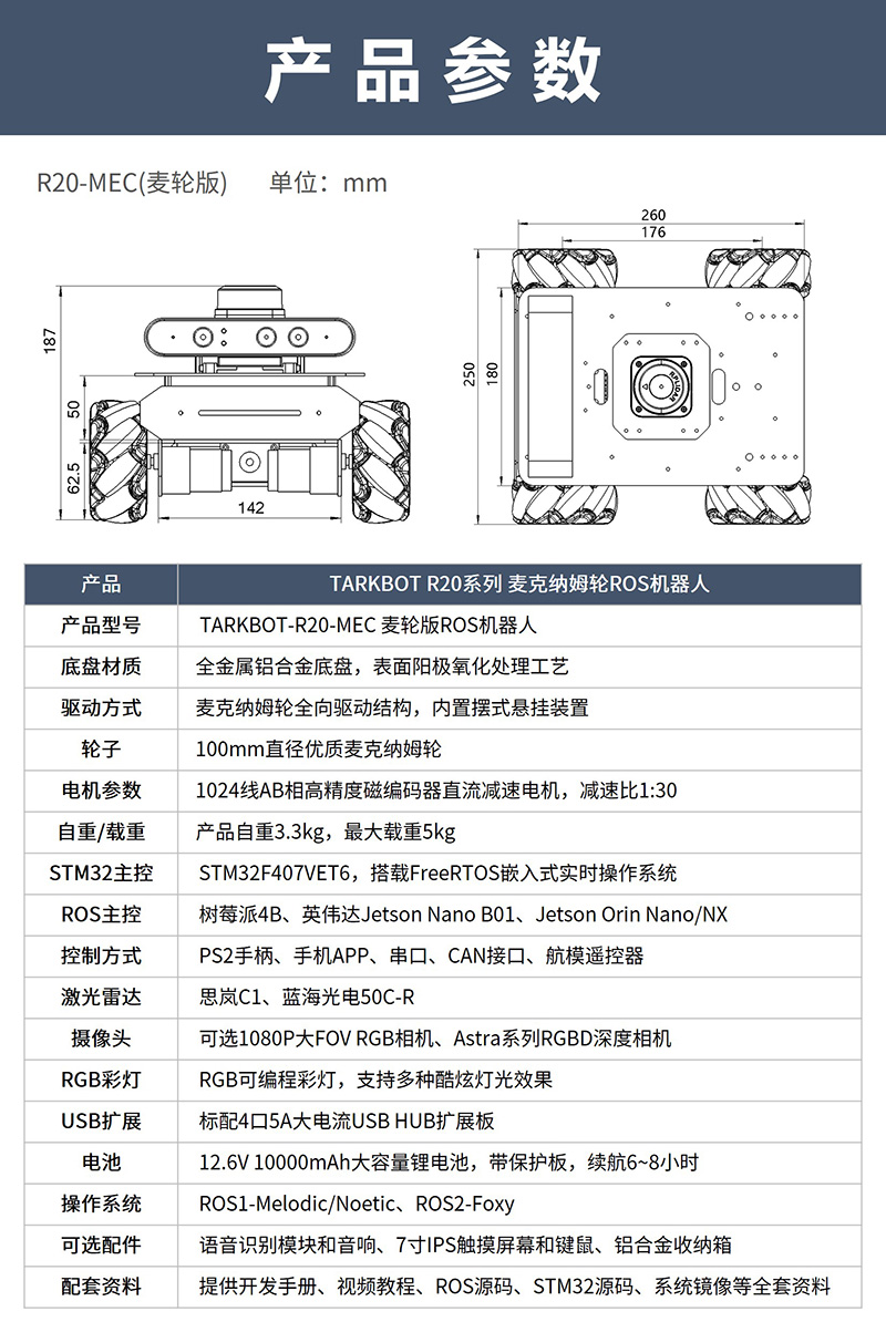 TARKBOT-R20-MEC 麥克納姆輪ROS機(jī)器人